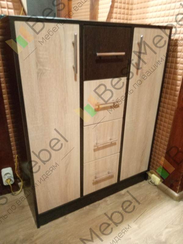 Современный дизайн и многофункциональность комода Эстет-3 BMS смогут оценить практичные люди, любящие во всем порядок. Модель может быть как отдельным изделием, так и продолжением Вашего гарнитура. Вы можете подобрать подходящий цвет в нашей палитре. 2 закрытых распашными дверцами отделения с полочками и 4 вместительных выкатных ящика с легкостью вместят большое количество Ваших вещей. Заказать комод можно в нашем интернет-магазине.