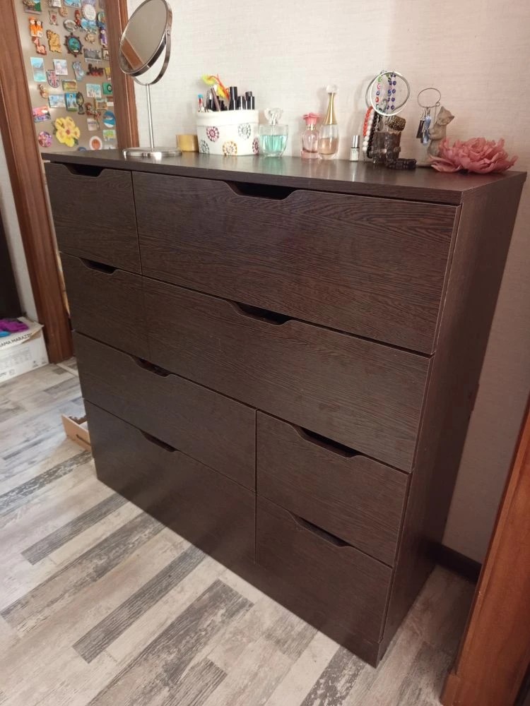 Хочу оставить отзыв о данном комоде. Заказывали через сайт с доставкой дома в феврале 2025 года. Комод искали очень долго, так как нигде именно серого цвета не было, сколько магазинов и сайтов не пересмотрела, еще что очень нравится в данном магазине, что можно подогнать мебель по своим размерам, что мы и сделали с комодом) Комод идеально подошел по цвету к гардеробной, просто один в один. Сам комод очень красивый, вместительный и функциональный. Доставка была осуществлена во время. Все комплектующие к комоду были в наличии. Очень довольна покупкой данного комода. Спасибо большое «Бестмебель»! Вернемся к вам, еще и не раз!
