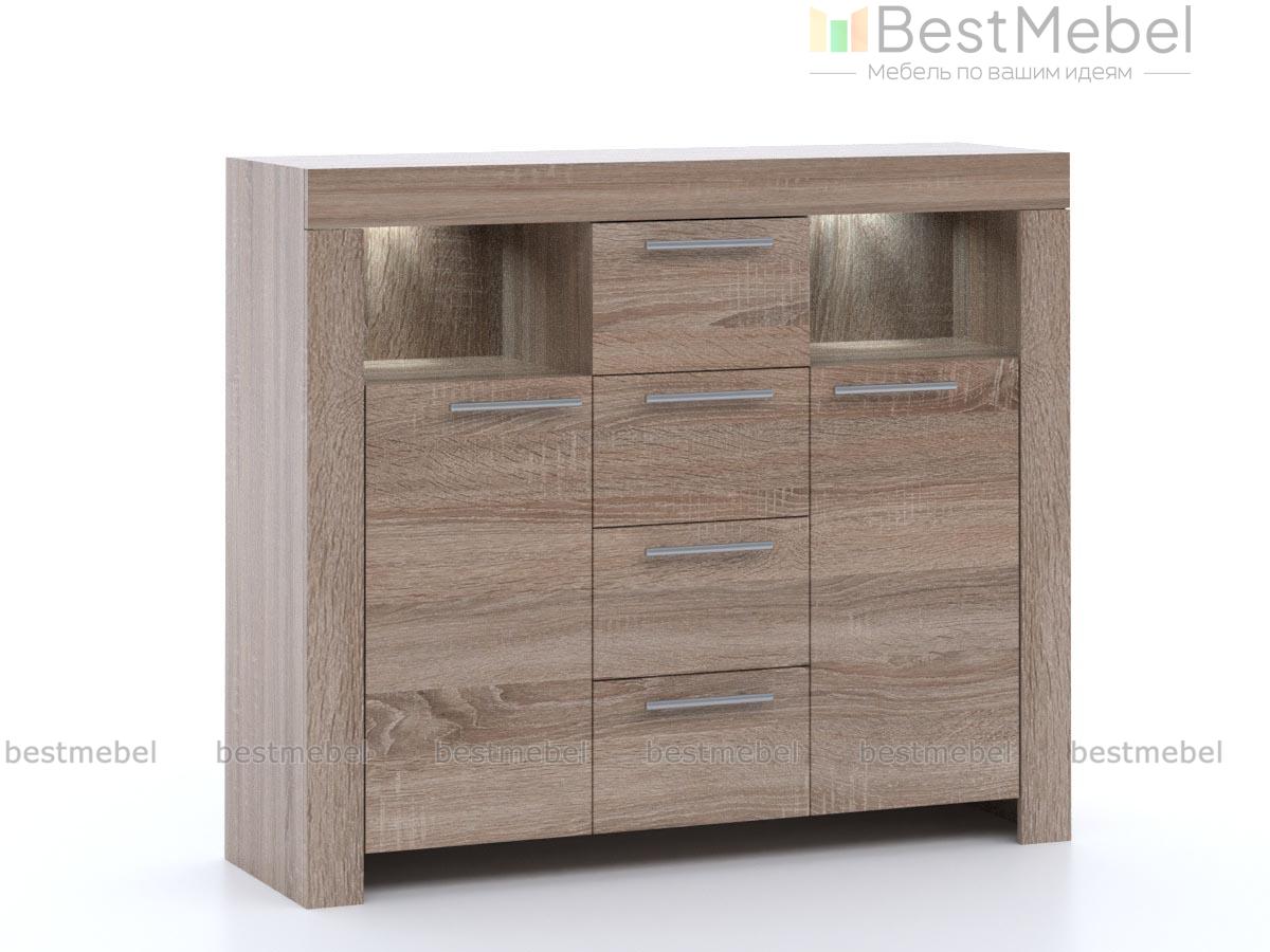 Комод Sky 155 BMS гармонично впишется в популярные скандинавские интерьеры. Нарочито массивная благодаря накладкам на фасады и выполненная в теплых тонах под массив дерева, модель станет частью уютного и функционального интерьера. Комод оборудован широкой столешницей, рядом из четырех выдвижных ящиков, распашными отделениями с полками и двумя нишами, мягко подсвеченными светодидами. Практичная расцветка и износостойкость материалов делают модель простой в уходе и долговечной. Купить комод Sky 155 BMS приглашаем по лучшей цене в наш интернет-магазин