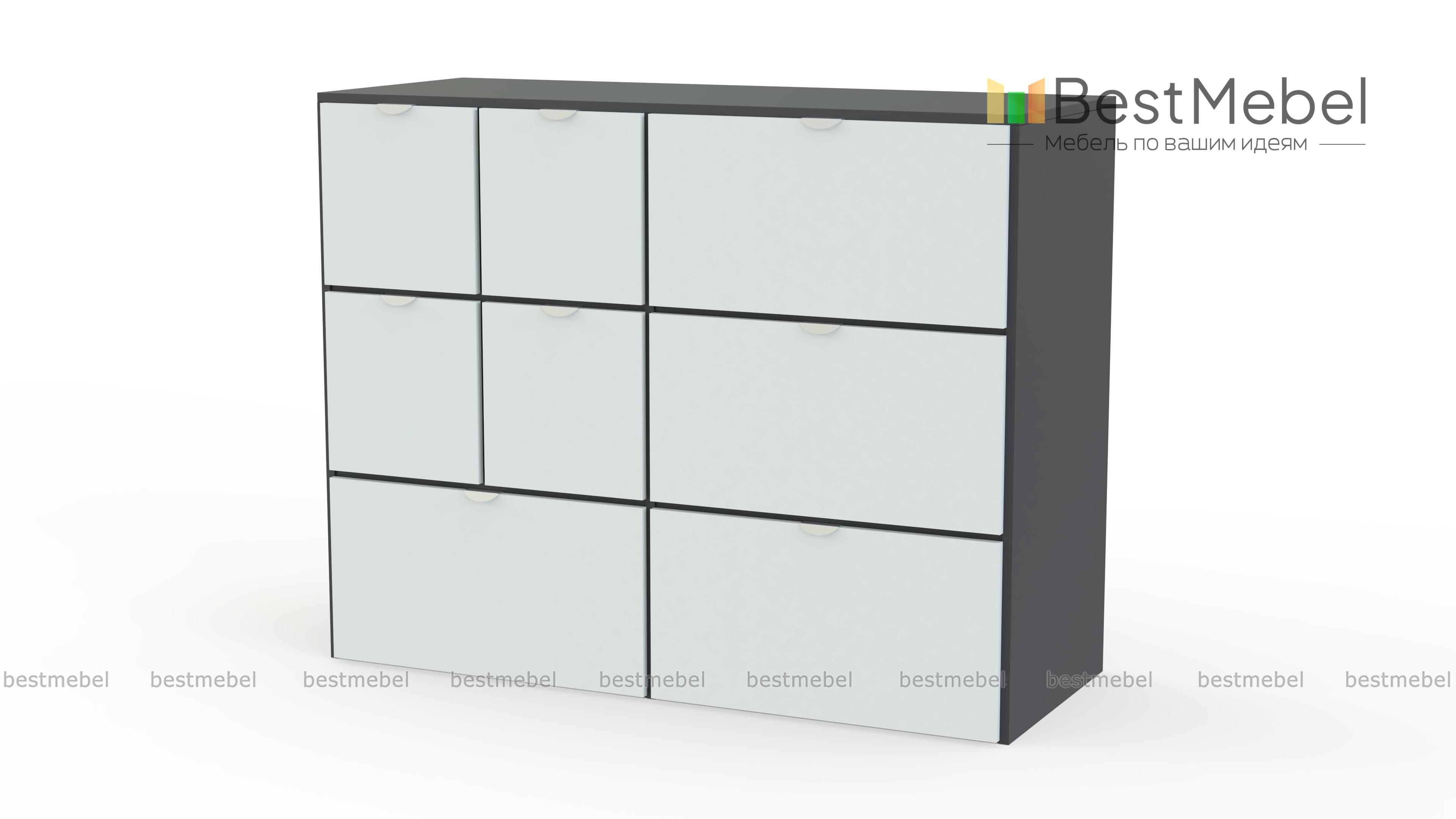 Комод Вистхус Visthus 3 – для тех, кто привык к рациональной организации пространства и порядку в вещах. Продуманная система хранения включает в себя четыре больших выдвижных ящика и четыре малых, в которых найдется место для одежды, аксессуаров, постельного белья и множества мелочей. Светлые фасады, разделенные контрастными вставками, оснащены полукруглыми торцевыми ручками. Купить комод Вистхус Visthus 3 для меблировки спальни, гостиной или прихожей вы сможете в нашем интернет-магазине. Выбирайте мебель в стиле IKEA (ИКЕА) от производителя BestMebelShop!
