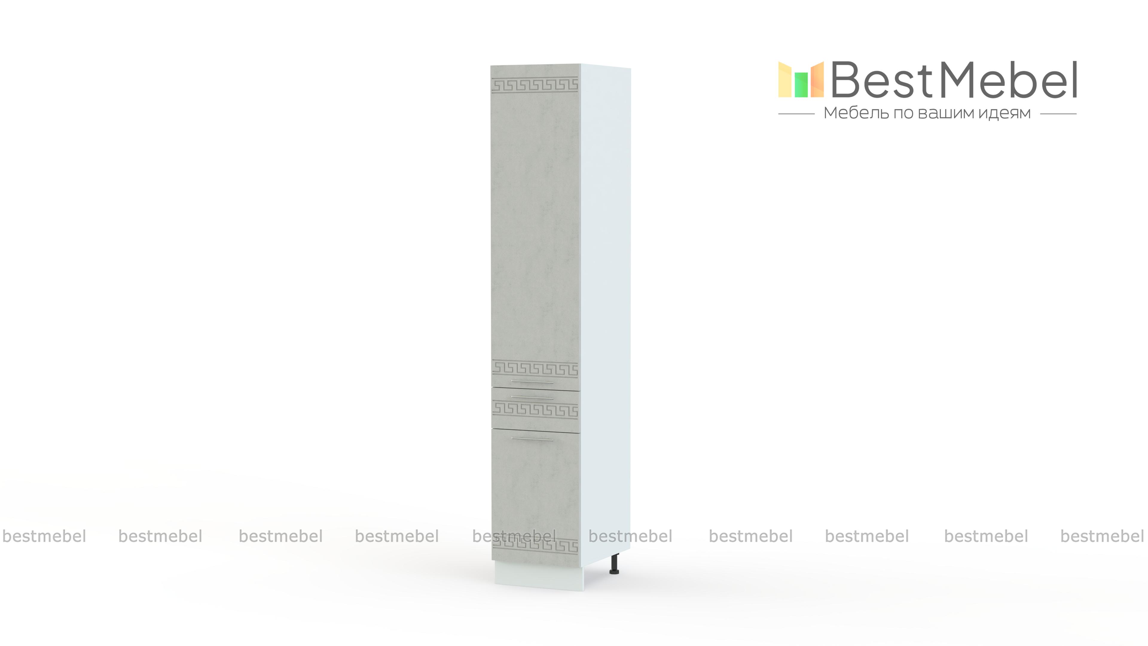 Шкаф-пенал 1 ящик 400 Греция BMS – это компактные размеры, отличная вместительность и демократичная цена. Высокий узкий шкаф оборудован двумя распашными отделениями с полками для продуктов и кухонной утвари и выдвижным ящиком, удобным для мелких вещей. Фасады в белом матовом оттенке с орнаментом не только эффектно смотрятся, но и надолго сохранят эстетичный вид благодаря износостойким материалам. Купить шкаф-пенал 1 ящик 400 Греция BMS, простой в уходе и надежный в эксплуатации, приглашаем недорого в наш интернет-магазин.