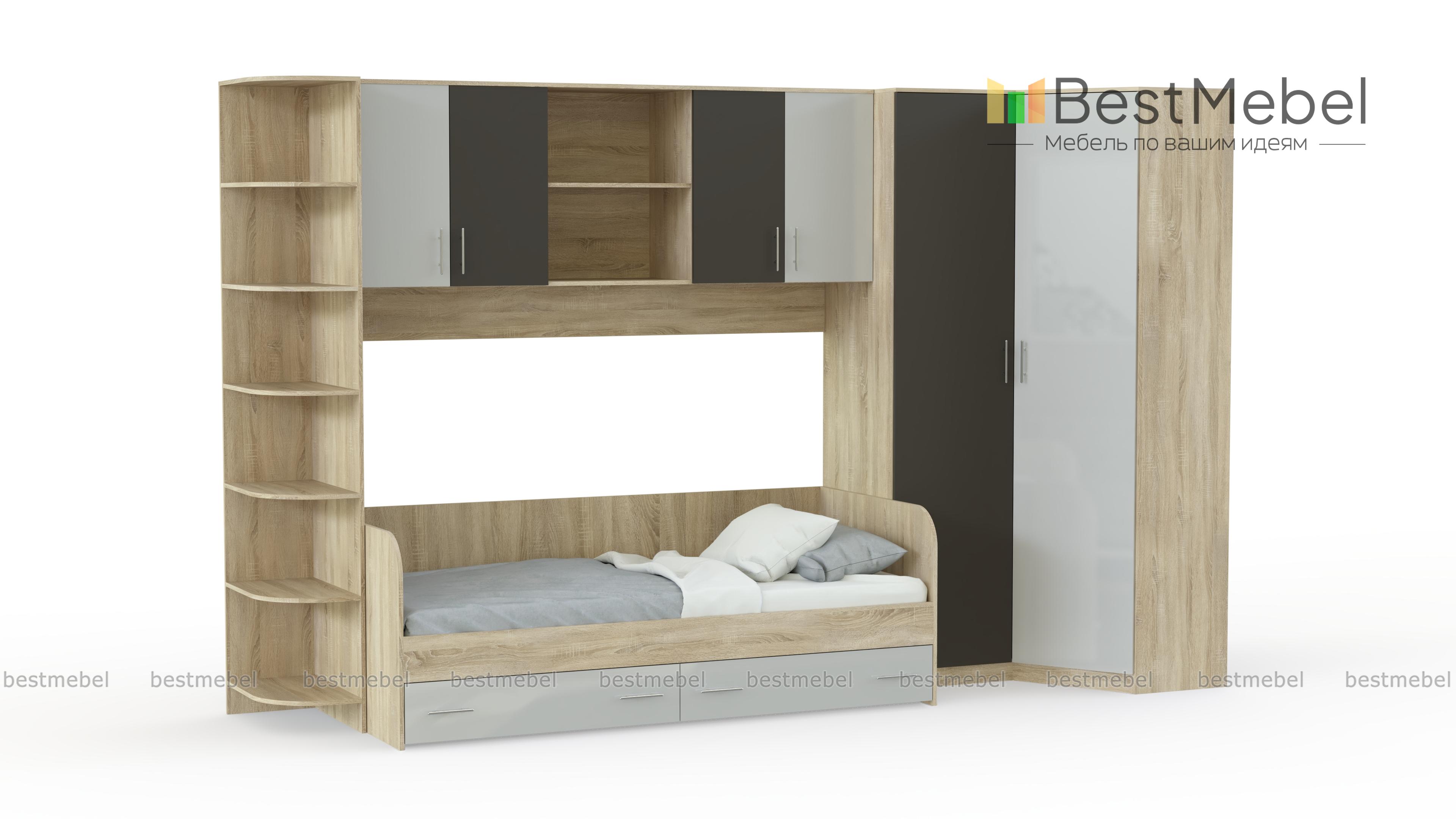 Детская комната Лучик 1 BMS – яркая и многофункциональная современная модель, объединившая комфортное спальное место с вместительной системой хранения. В комплект входит кровать с двумя выдвижными ящиками в основании, вместительный угловой шкаф, угловой модуль с открытыми полками и вместительная антресоль помогут разместить книги и необходимые мелочи. Цветные фасады добавят в детскую комнату красок и создадут позитивную атмосферу. Купить детскую комнату Лучик 1 BMS недорого приглашаем в наш интернет-магазин.