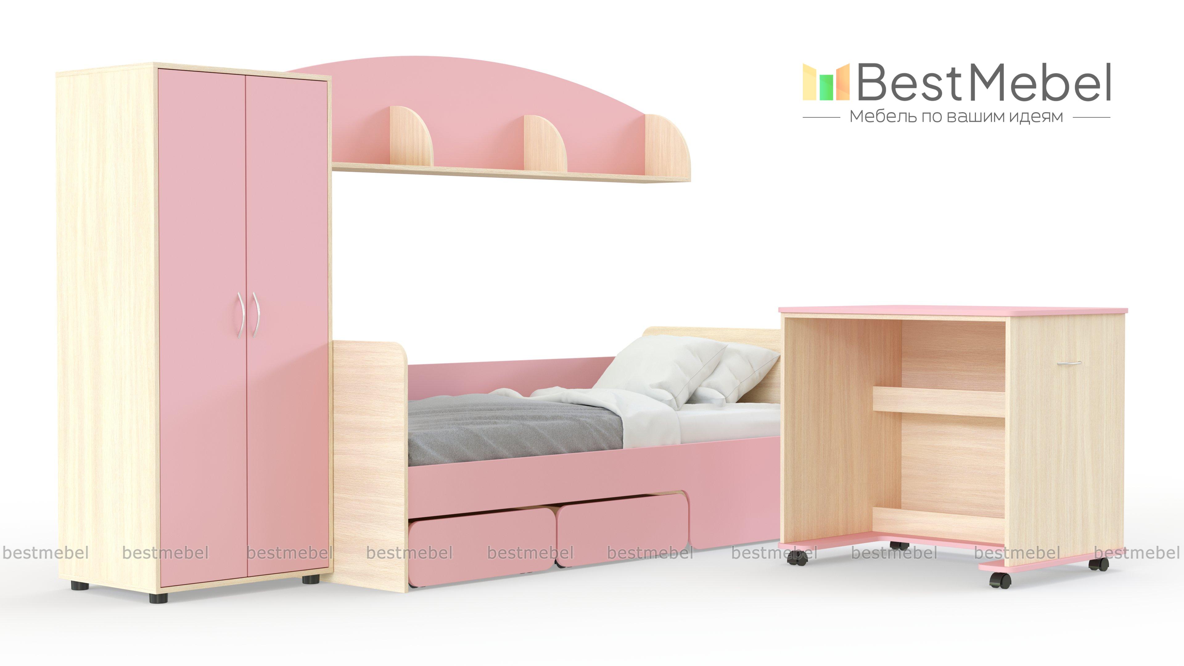 Детская комната Миф 26 BMS оборудована всем необходимым для комфортного отдыха, учебы и хранения вещей. Композиция с белыми матовыми фасадами – отличный выбор для комнаты девочки, сочетающий в себе современный дизайн, функциональность и безопасность. В комплект входят кровать с выкатными ящиками для игрушек или постельных принадлежностей, распашной платяной шкаф, навесная полка для книг и мобильный письменный столик. Купить детскую комнату Миф 26 BMS приглашаем к нам в интернет-магазин.