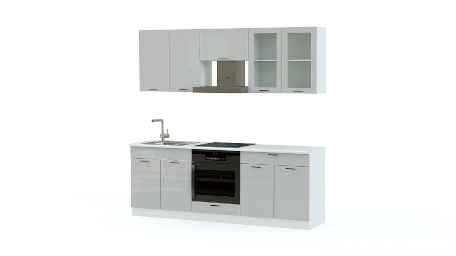 Простые геометрические линии и лаконичный дизайн сплошных глянцевых фасадов кухни Виктория BMS придутся по вкусу любителям минимализма и современных решений. Три нижних шкафа и три навесных смотрятся особенно гармонично, а благодаря возможности подбора расцветки, легко впишутся в интерьер. Интересная деталь – матовые стекла в дверцах посудного шкафчика и стильные эргономичные ручки-рейлинги. Модель не только эстетична, но и позволит оптимально обустроить пространство кухни.