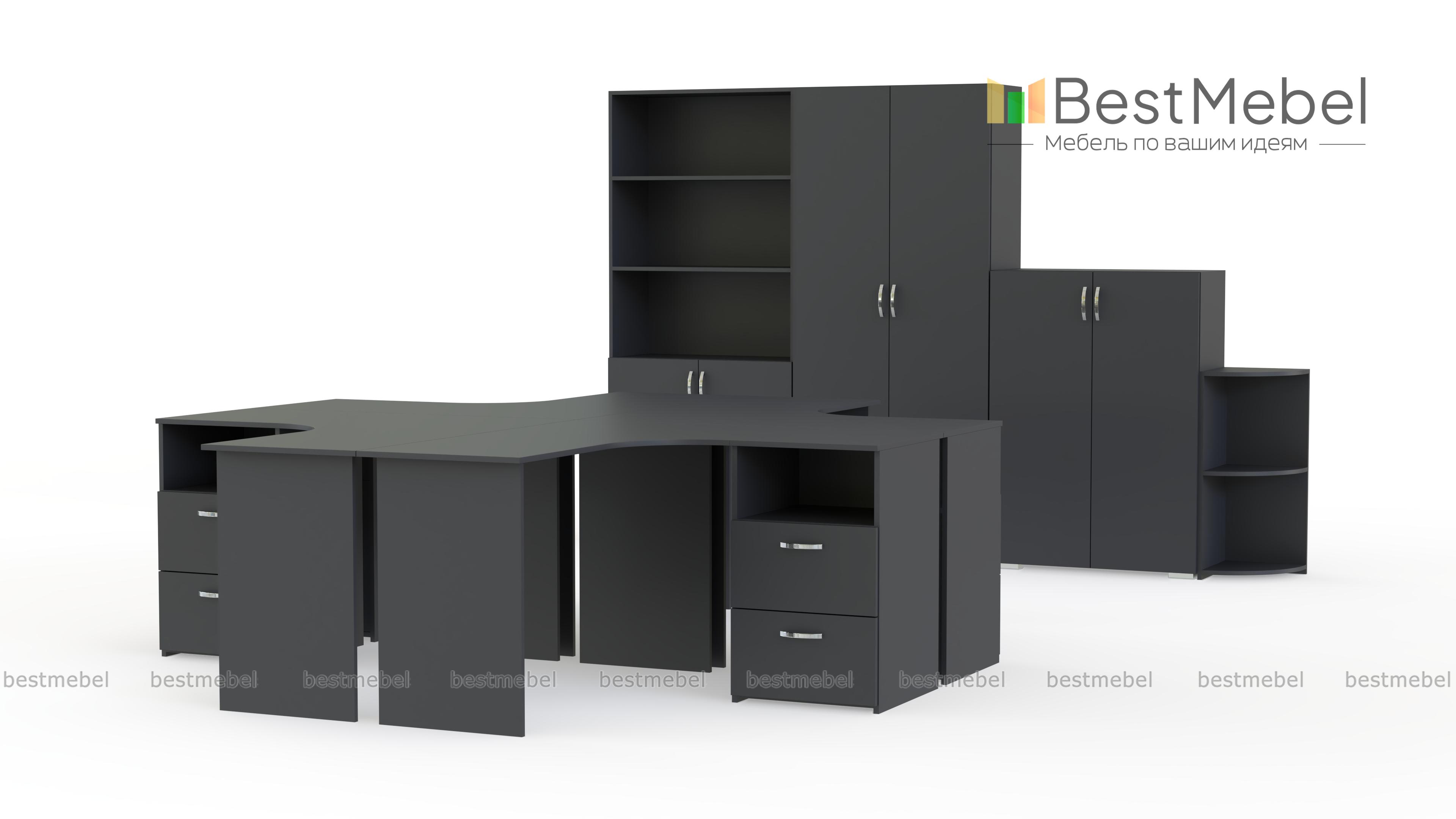 Офисный комплект Эконом BMS – не только простое и стильное, но и экономически выгодное решение для современного офиса. Лаконичный комплект включает в себя четыре угловых письменных стола с приставными тумбами, высокий и низкий двухдверные шкафы, комбинированный шкаф с открытыми полками и угловой стеллаж. Нейтральные тона под массив дерева легко вписать в любой интерьер. Купить офисный комплект Эконом BMS, подобрав необходимые параметры, вы сможете недорого в нашем интернет-магазин.