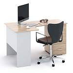 Стол офисный угловой Монро 32 BMS дополнит классический рабочий кабинет или современный опен спейс, может использоваться самостоятельно или комбинироваться с аналогичными столами. Лаконичная и функциональная, модель оборудована эргономичной столешницей с полукруглым вырезом, опирающейся на тумбу с выдвижными ящиками для канцелярских принадлежностей. В оформлении использовано стильное сочетание белого и светлого оттенка дуба. Купить стол офисный угловой Монро 32 BMS по лучшей цене приглашаем в наш интернет-магазин.