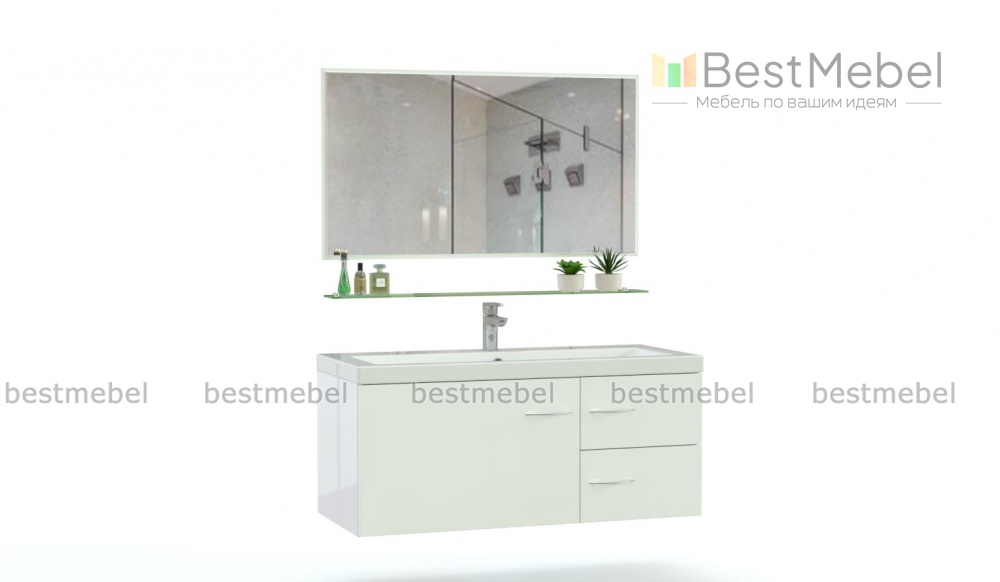 Мебель для ванной Тийда 5 BMS поможет вам органично вписать в современный интерьер раковину и сделать уход за собой комфортным, разместив все базовые гигиенические принадлежности. В комплект входят широкая подвесная тумба с двумя выдвижными ящиками и отделением с распашной дверцей и прямоугольное зеркало, которое может быть дополнено светодиодной подсветкой. Белоснежный гладкий фасад с хромированной фурнитурой легко моется и надолго сохраняет эстетичный вид. Купить мебель для ванной Тийда 5 BMS приглашаем к нам в интернет-магазин.