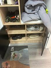Прихожая Дублин 24 BMS имеет небольшую ширину, поэтому прекрасно подходит для малогабаритных помещений. Композиция состоит из панелей открытой вешалки с крючками, стеллажа, антресоли и закрытых дверцами обувных полок. Однотонные фасады без лицевой фурнитуры красиво выделяются на фоне корпуса в древесных тонах, сиденье имеет износостойкую мягкую обивку. Купить прихожую Дублин 24 BMS с выбором цветовой гаммы и размеров вы сможете на сайте нашего интернет-магазина.