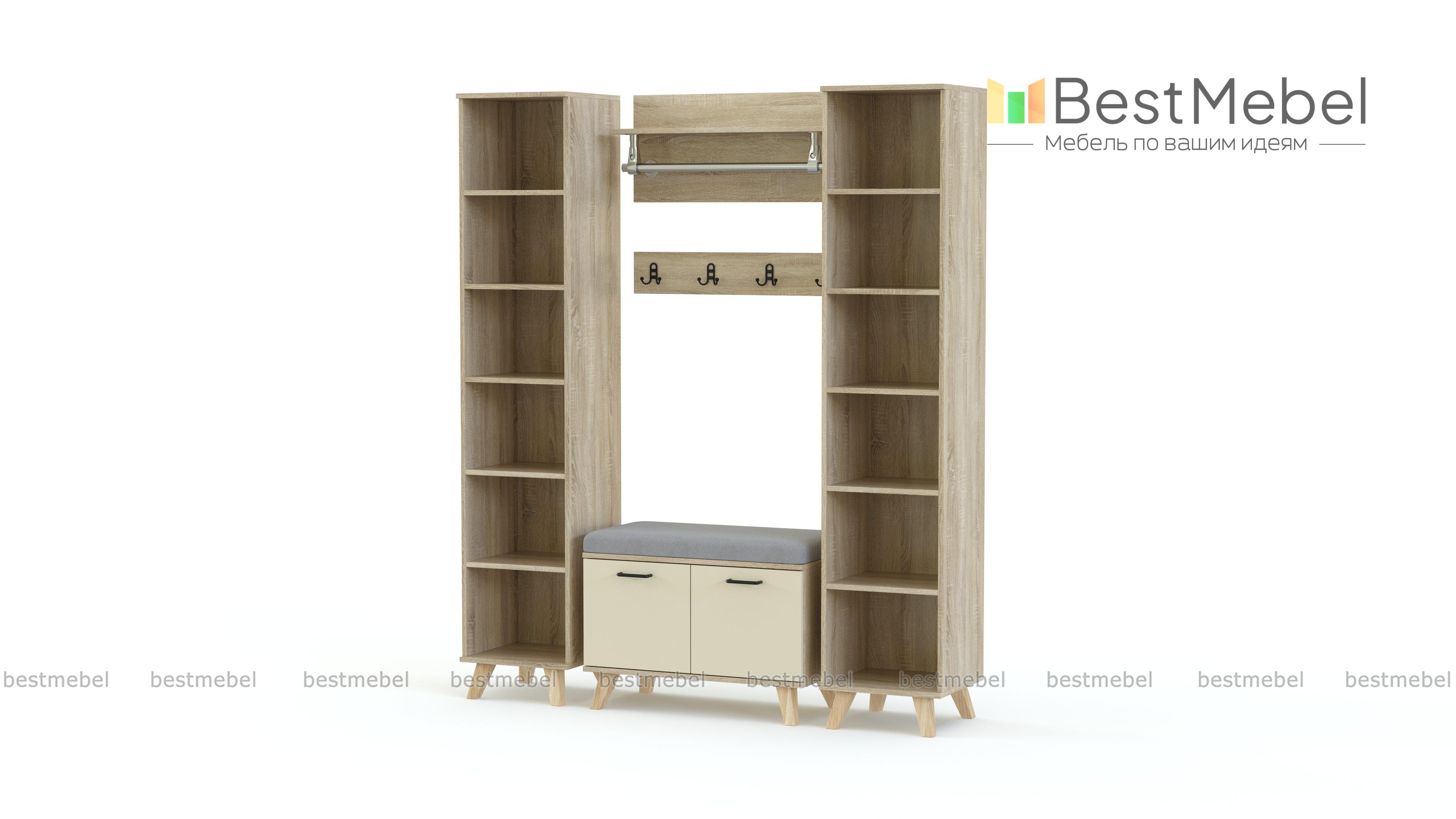 Прихожая Эста Нео 14.4 BMS поможет создать комфортный интерьер в современной стилистике. Модульная композиция в трендовых контрастных оттенках включает в себя два стеллажа, распашную обувницу с мягкой обивкой сиденья и две навесные вешалки – с крючками и штангой. Открытые системы хранения не выглядят громоздко и станут отличной альтернативой шкафам в небольших помещениях. Купить прихожую Эста Нео 14.4 BMS с возможностью выбора цвета и размеров приглашаем в наш интернет-магазин.