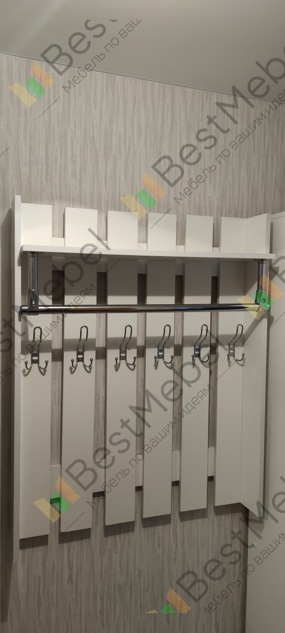Вешалка Каир 4 BMS – практичное решение для современной прихожей. Навесная модель с закрытыми боковинами, оборудованная крючками, хромированной штангой и верхней полкой, позволяет компактно разместить необходимую в быстром доступе одежду, аксессуары и головные уборы. Благодаря конструкции из отдельных вертикальных планок вешалка не выглядит громоздко и визуально увеличивает высоту потолков. Купить вешалку Каир 4 BMS вы сможете в нашем интернет-магазине, подобрав цвет и размеры.