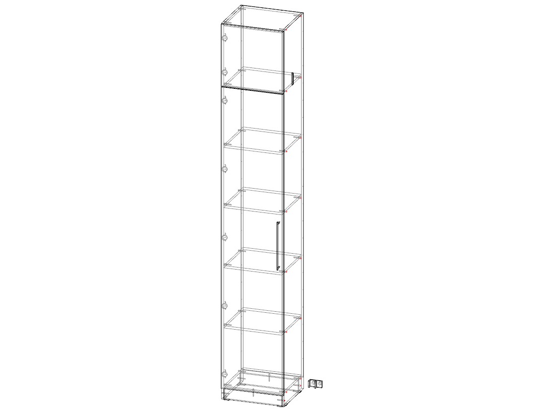 Современный дизайн и стильная фурнитура придают шкафу изысканный вид, делая его не только функциональной, но и декоративной частью интерьера. Однодверный шкаф с полками под белье или другие предметы обихода, прекрасно впишется в пространство в комнате, белого цвета шкаф с черными стильными ручками.
