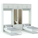 Шкаф-кровать трансформер Элли 11 BMS – элегантное решение, объединившее функции спальни и гостиной. Белоснежный шкаф выполнен в современном классическом стиле и отличается высокой функциональностью. В центре композиции располагается платяное отделение с зеркальными дверцами и выдвижными ящиками, по бокам – модули с откидными кроватями, а практичным дополнением для хранения сезонных вещей станет антресоль. Купить шкаф-кровать трансформер Элли 11 BMS и сэкономить полезную площадь вам всегда поможет наш интернет-магазин.