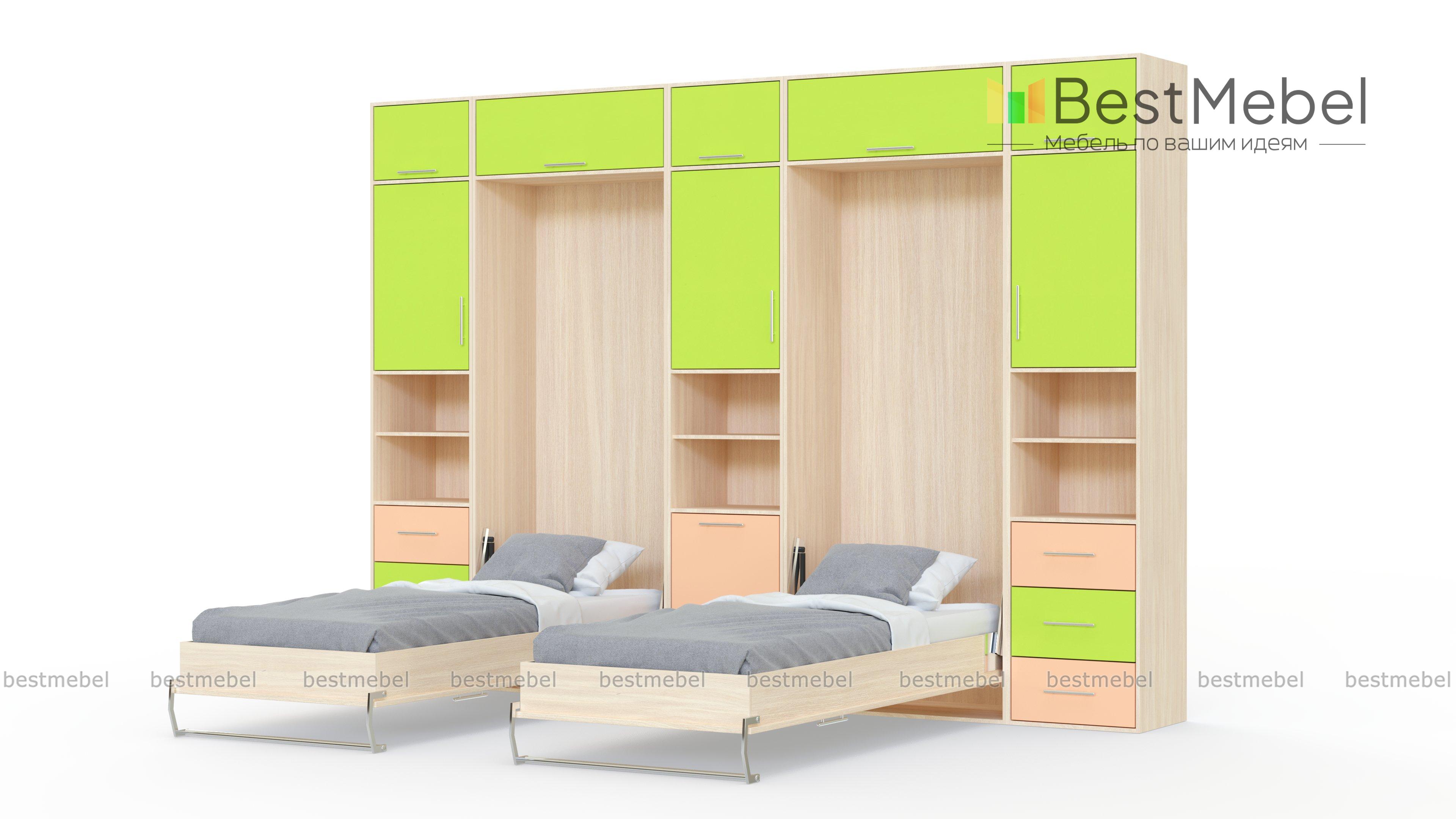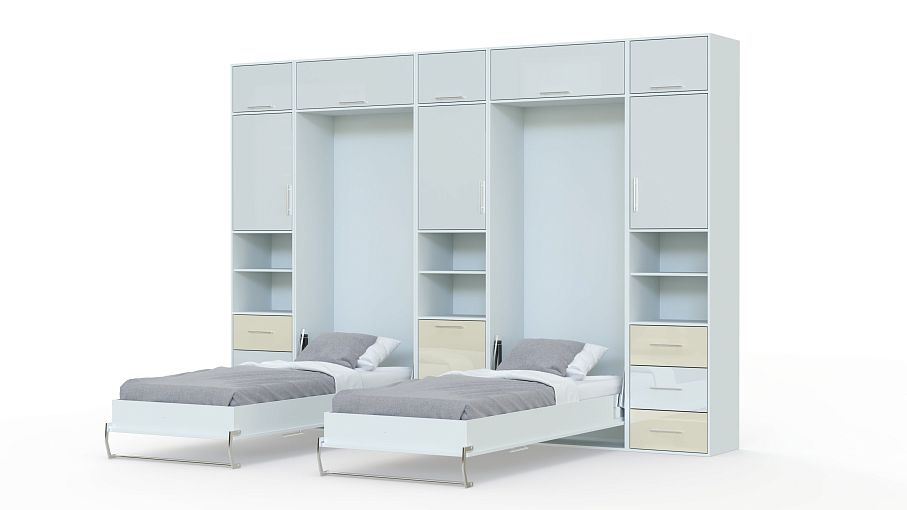 Шкаф-кровать трансформер Вилли BMS гармонично сочетает яркий современный дизайн и высокую функциональность. Модель-трансформер, объединившая удобную систему хранения, рабочие места и зону отдыха, оптимальна для небольших детских комнат. В сложенном виде композиция представляет собой высокую стенку с антресолями, дополненную двумя письменными столиками. При необходимости модули со столешницами легко превращаются в полноценные кровати. Купить шкаф-кровать трансформер Вилли BMS, который непременно понравится детям, приглашаем в наш интернет-магазин.