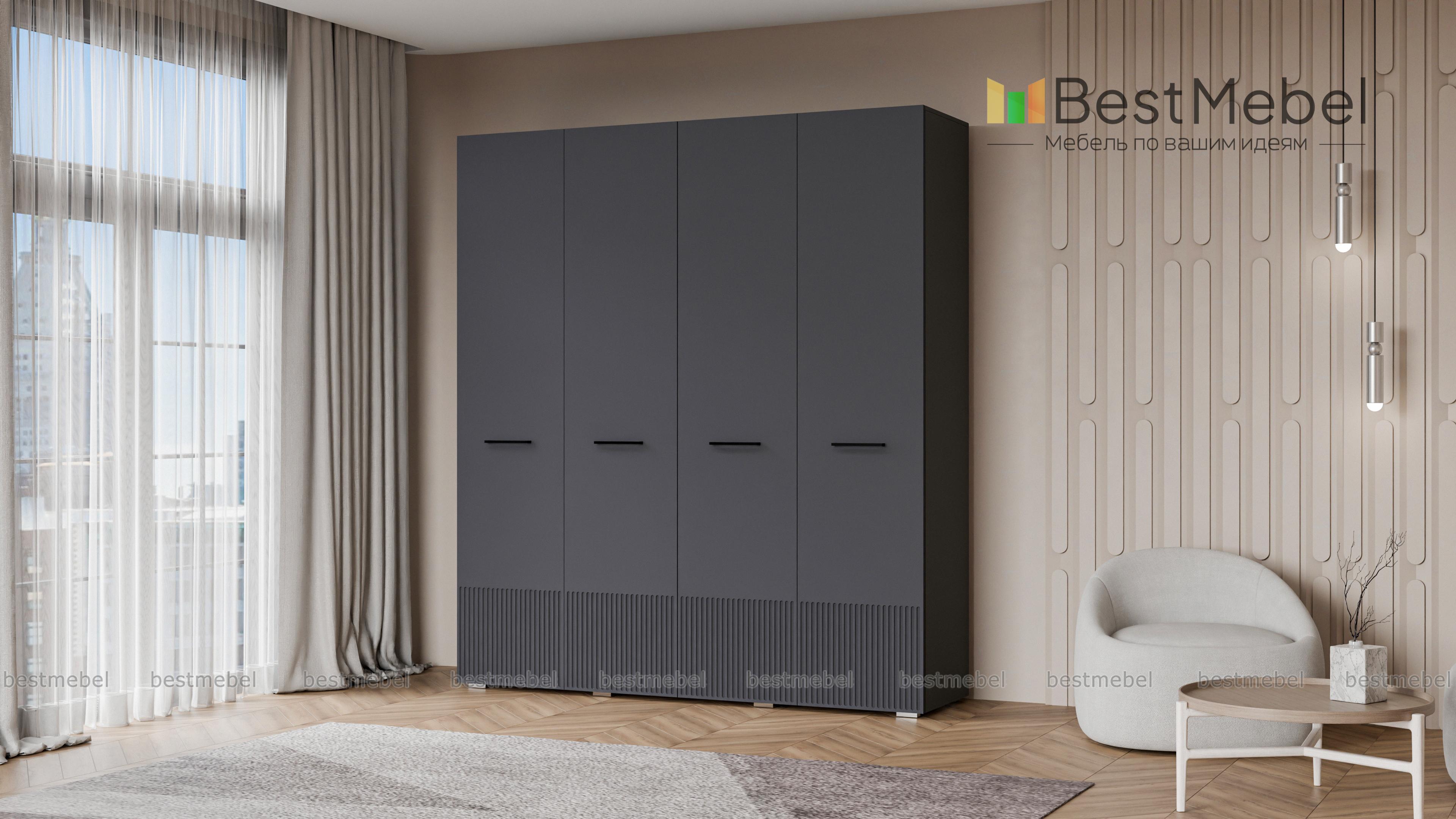 Шкаф распашной Декарт 4 BMS выполнен в традиционном стиле с поперечными контрастными ручками и фрезеровкой, что придает ему современный вид. Сочетание двух штанг разной длины и полок позволяет вам удобно организовать хранение одежды и коробок с обувью. Устойчивый к механическим повреждениям и влаге фасад из МДФ легко содержать в чистоте. Купить шкаф распашной Декарт 4 BMS с выбором размеров, цвета и наполнения вы всегда сможете в нашем интернет-магазине.