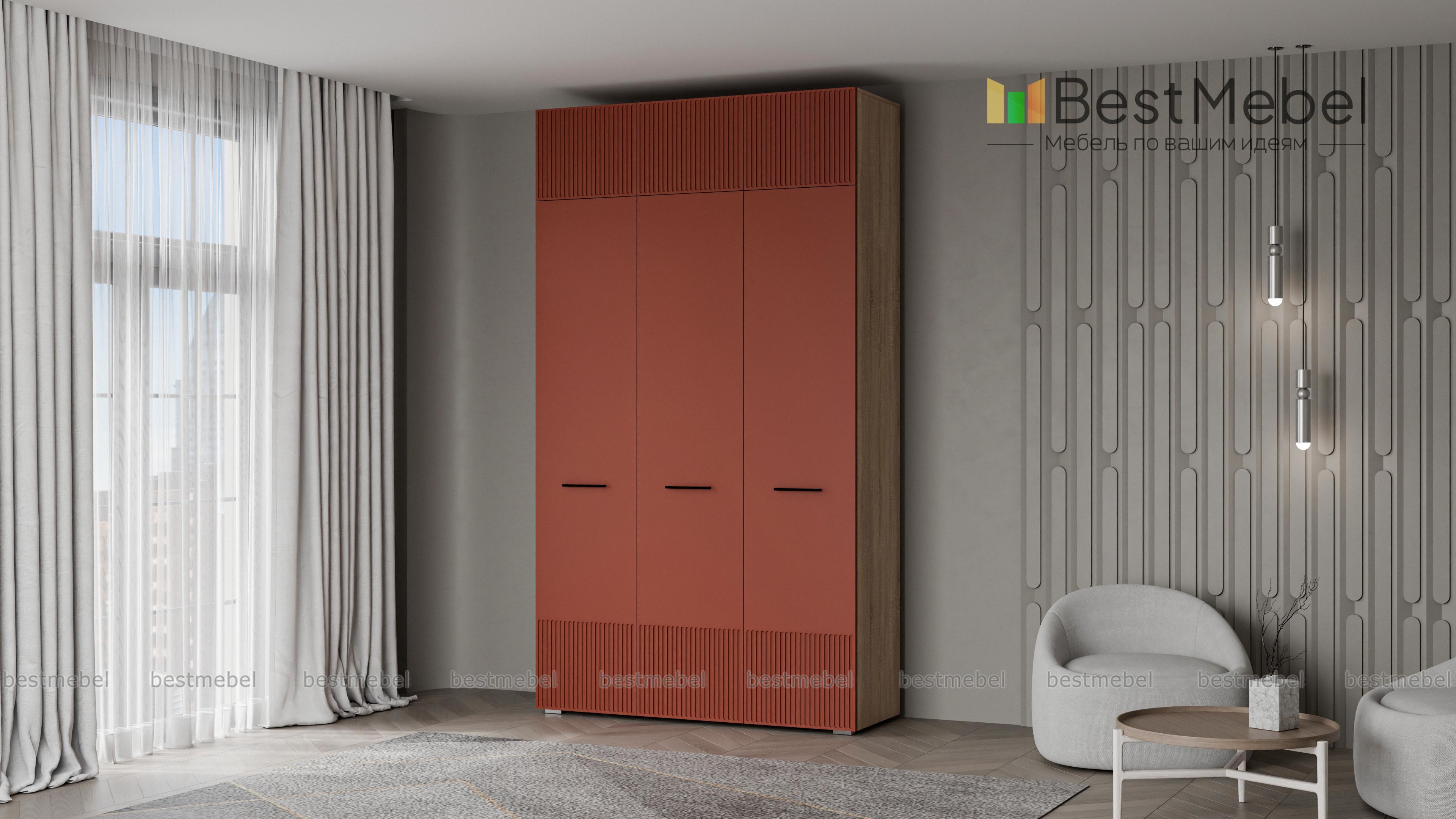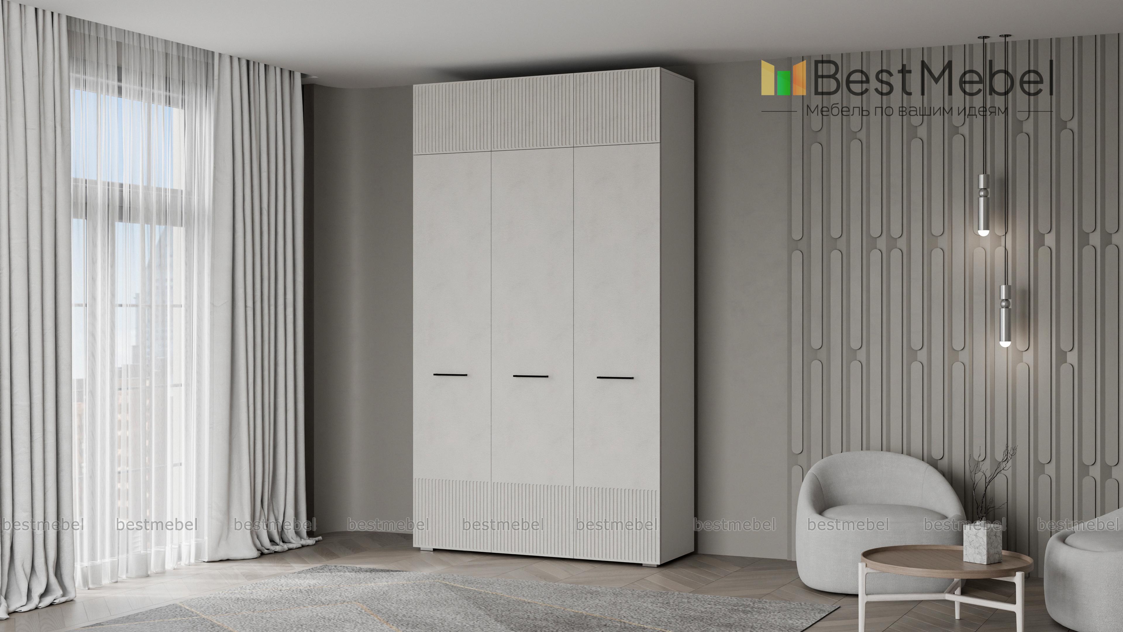Шкаф распашной Декарт 9 BMS выполнен в современном классическом стиле. Нижняя часть фасада и дверцы антресоли украшены лаконичным стильным рельефом, в роли акцента выступают поперечные ручки-скобы. Платяное отделение справа и ряд бельевых полок слева — оптимально для хранения базового гардероба в спальне, детской комнате или прихожей. Купить шкаф распашной Декарт 9 BMS приглашаем в наш интернет-магазин с возможностью выбора габаритов, цвета и фурнитуры.