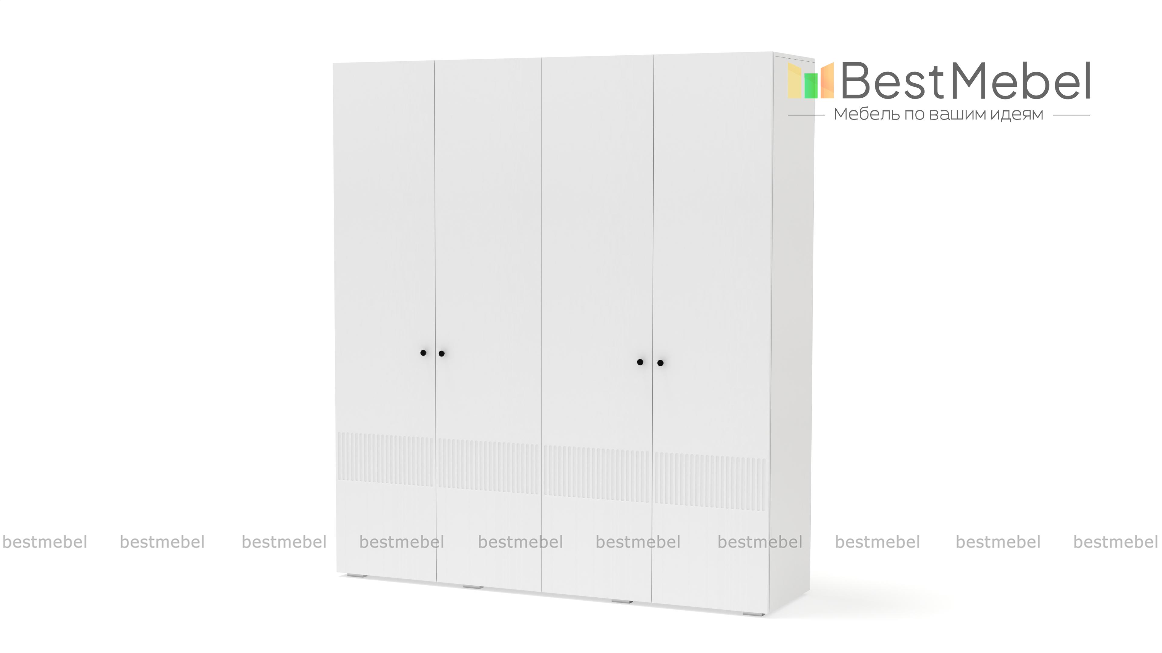 Шкаф распашной Джосс 4 BMS — практичная и стильная четырехдверная модель в прихожую, детскую или спальню. Два отделения со штангами и ряд полок слева помогут вам расположить вещи по категориям — от верхней одежды до трикотажа. Акцентный цветной фасад гардероба украшает фрезеровка, на дверцах установлены миниатюрные круглые ручки. Купить шкаф распашной Джосс 4 BMS вы сможете в нашем интернет-магазине, изменив по желанию размеры, тип ручек и цветовую гамму.