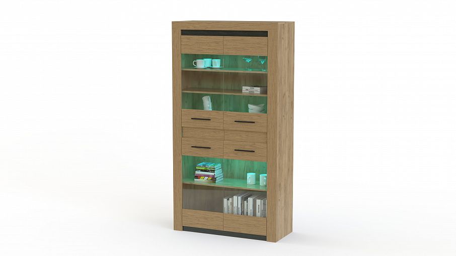 Шкаф распашной Керри 7 BMS – это современная модель в натуральных древесных оттенках, нарочито массивная благодаря широким накладкам на фасаде и лаконичная. Оборудованный двумя распашными отделениями со стеклянными вставками и встроенной подсветкой, шкаф эффектно разместит изысканную посуду и предметы декора. Дверцы дополнены узкими ручками контрастного черного цвета. Купить шкаф распашной Керри 7 BMS для интерьера гостиной или столовой вы сможете в нашем интернет-магазине.