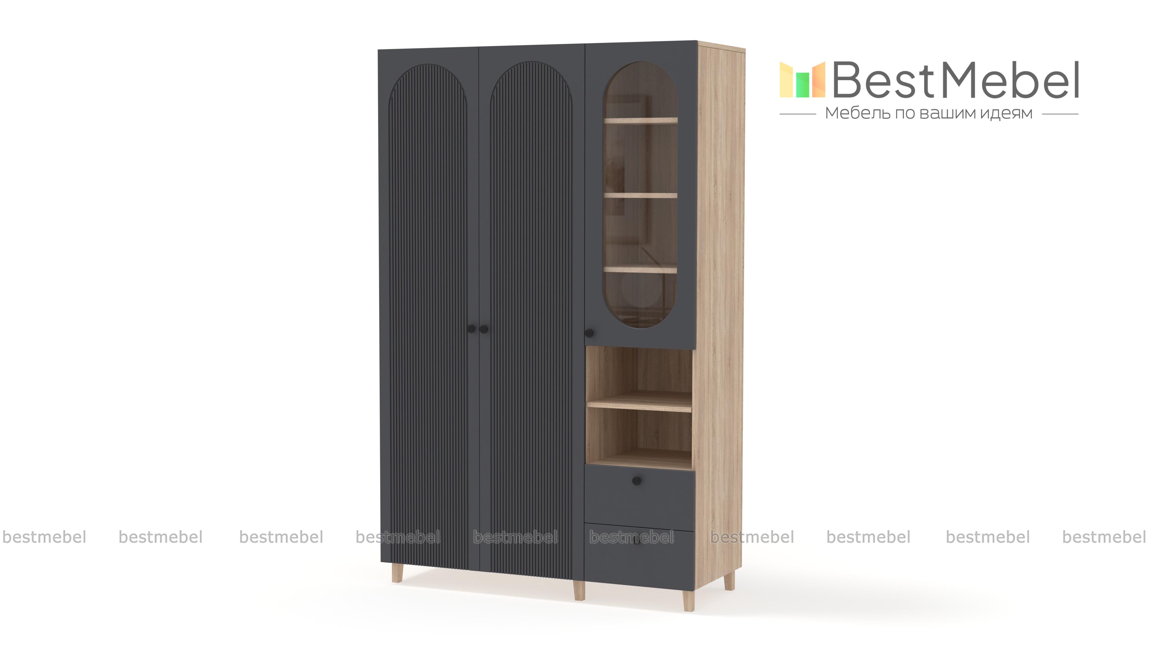Шкаф распашной Рене 12 BMS обеспечит разные варианты хранения благодаря функциональной конструкции. Слева располагается одежная штанга за распашными дверцами, а справа — застекленные полки, ниши и пара выдвижных ящиков. Высокие ножки добавляют этой элегантной фрезерованной модели в светлом оформлении легкости и «воздушности». Купить шкаф распашной Рене 12 BMS вы сможете недорого на сайте нашего интернет-магазина, подобрав размеры, цвет и фурнитуру.