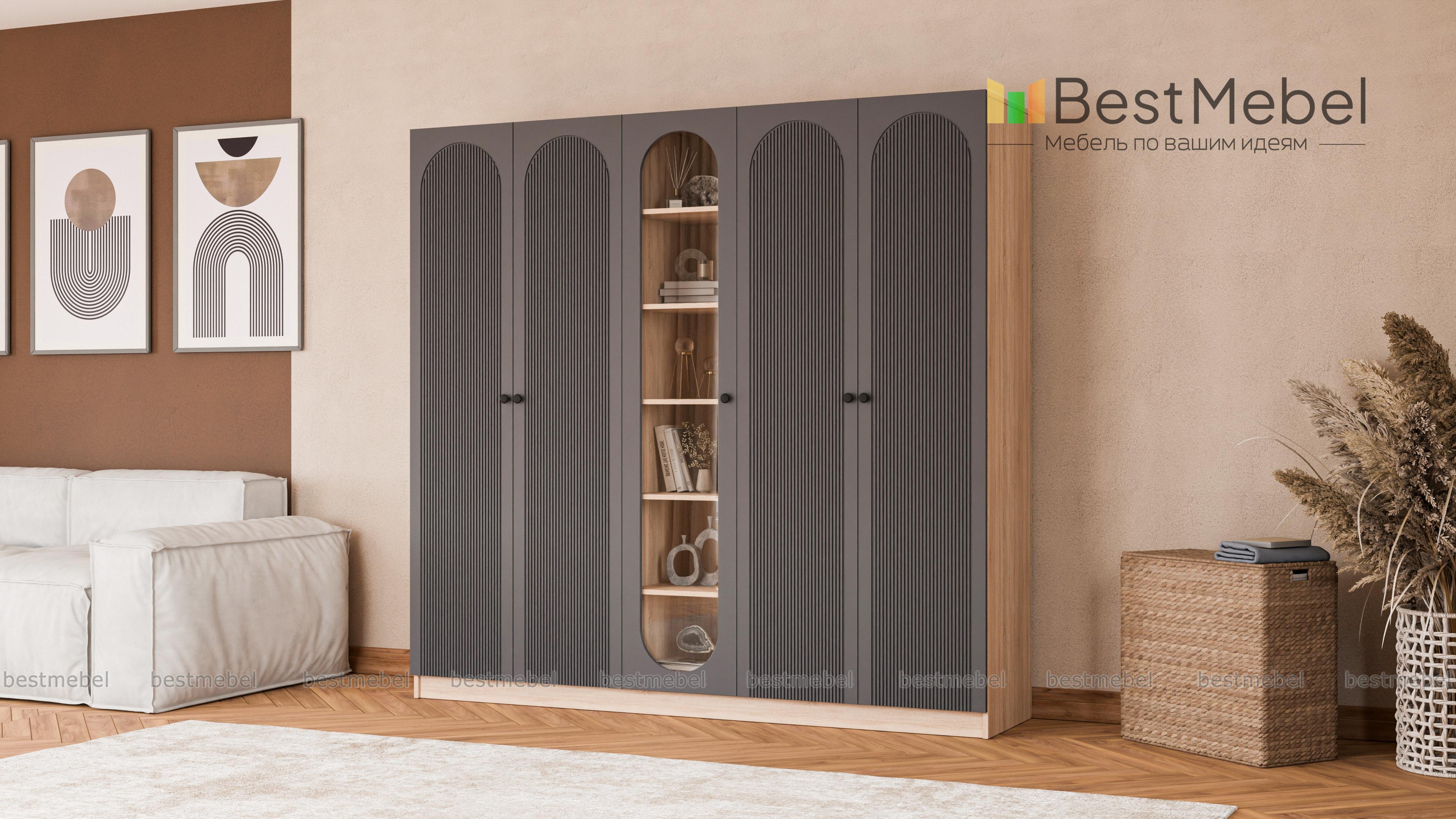 Шкаф распашной Рене 14 BMS с фактурными фасадами и большой овальной витриной в центре дополнит спальни и гостиные. Благодаря распашным створкам одежда хорошо просматривается, а на полках витрины будут на виду любимые книги, предметы коллекции и просто приятные мелочи. Материалы изготовления — ламинированная ДСП под древесный массив и МДФ. Купить шкаф распашной Рене 14 BMS можно на сайте нашего интернет-магазина в удобном размере и оттенках из каталога.