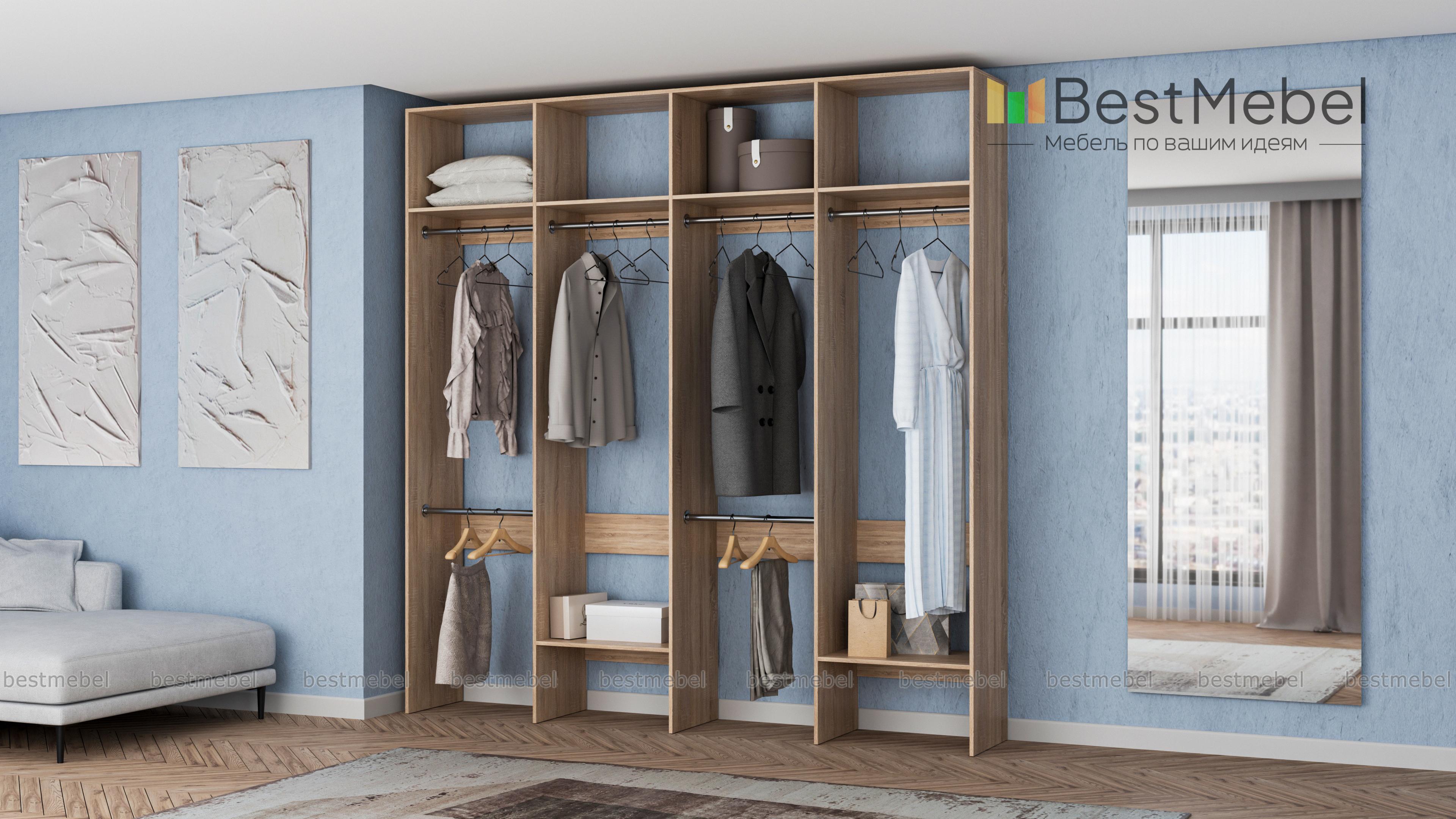 Стеллаж для одежды Мирта 62 BMS представляет собой внешне легкую и вместительную конструкцию. Разделенный на четыре секции, стеллаж оборудован расположенными на разной высоте штангами для короткой и длинной одежды, верхними и нижними полками. Отличное решение для гардеробной, стеллаж экономит пространство и обеспечивает аккуратное хранение одежде и обуви. Купить стеллаж для одежды Мирта 62 BMS, подобрав необходимые размеры, вы сможете на сайте нашего интернет-магазина.
