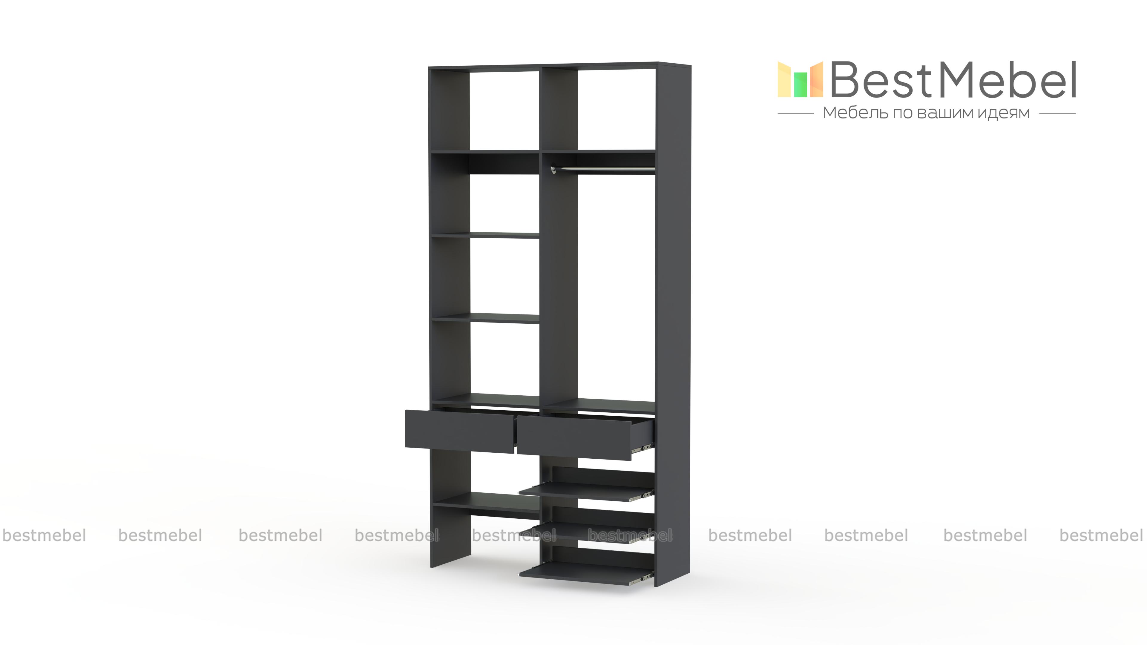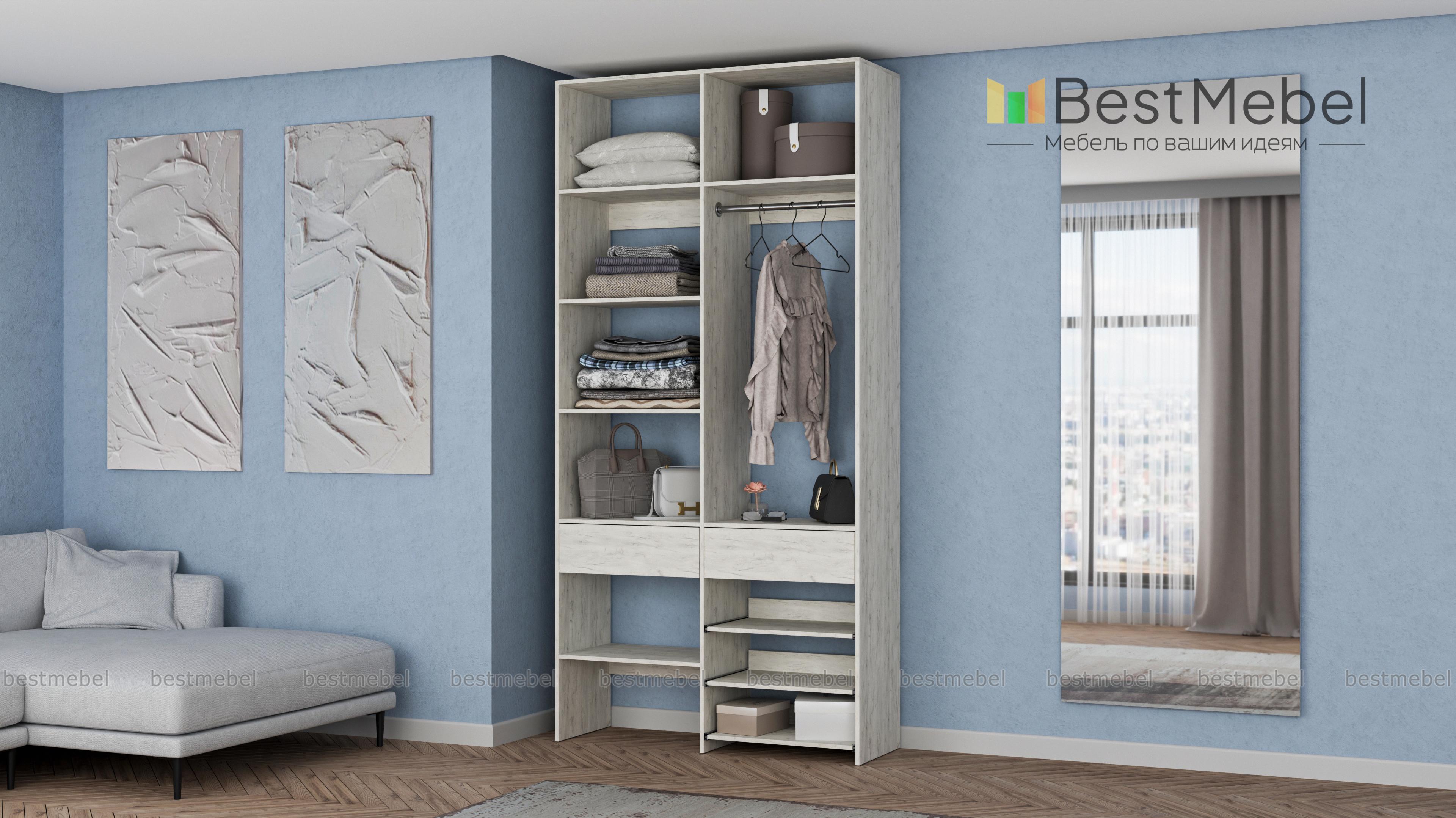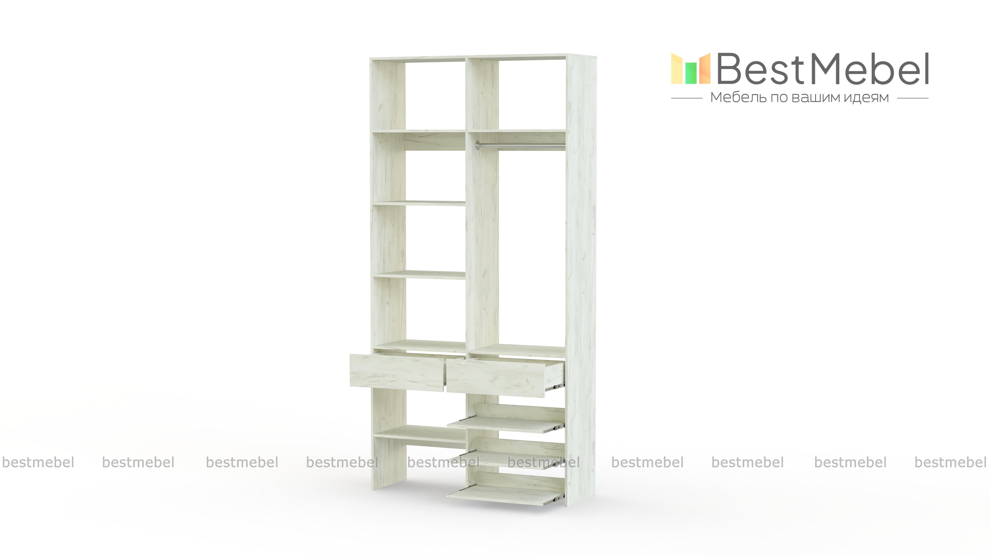 Стеллаж для одежды Мирта 81 BMS — компактная и вместительная система хранения в прихожую, спальню, гардеробную. Одежная штанга, два ящика под аксессуары и мелкий трикотаж, ряд бельевых полок и выдвижных панелей имеют эргономичное размещение. Благодаря простой форме и современному функциональному дизайну стеллаж легко комбинируется с другими предметами обстановки. Купить стеллаж для одежды Мирта 81 BMS приглашаем в наш интернет-магазин, подобрав цвет и размеры.