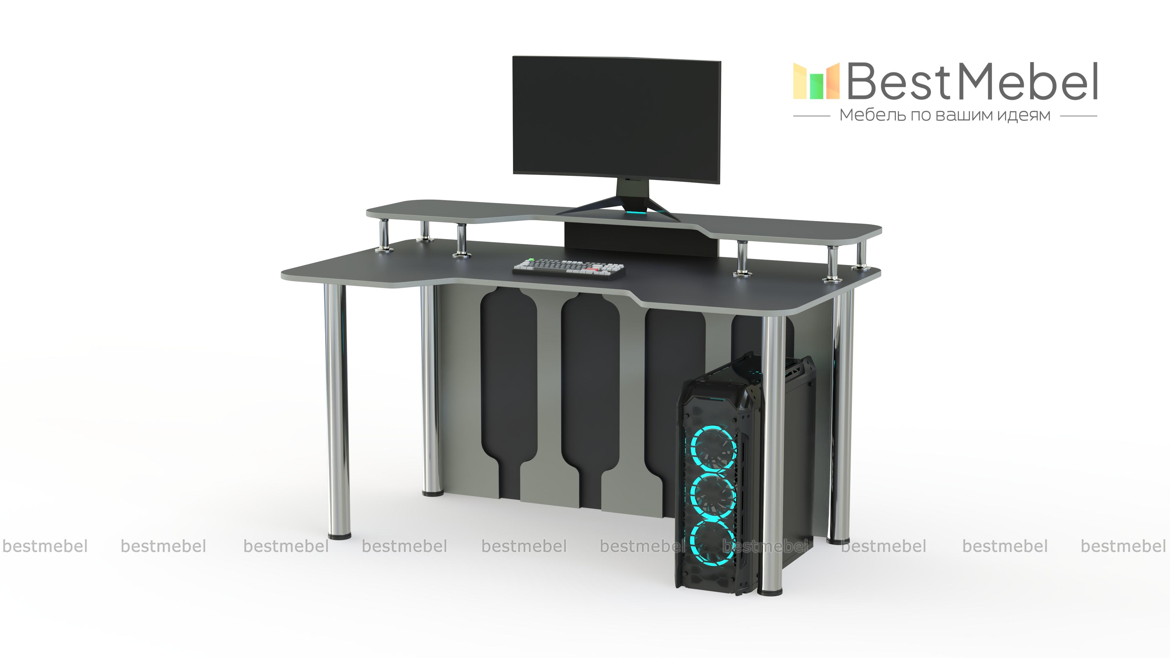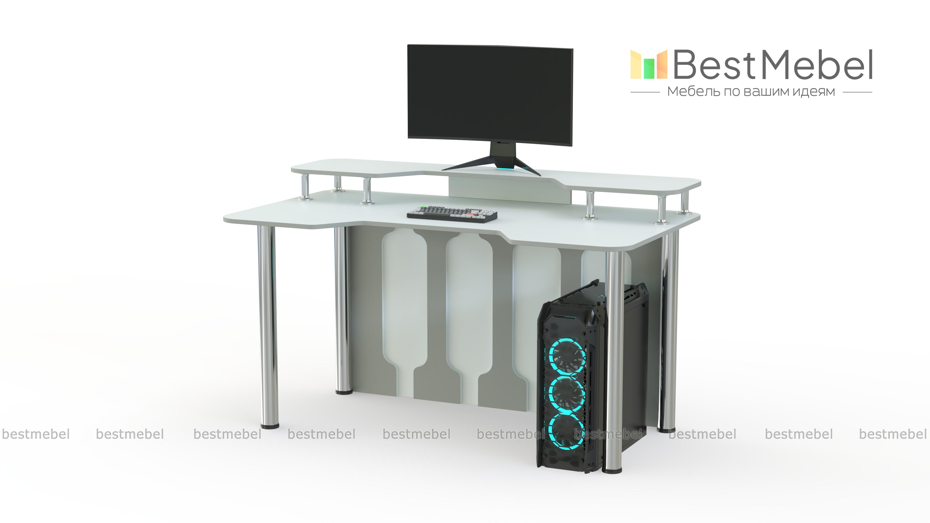 Игровой стол Персей тип 1 BMS, выполненный в черно-белой гамме, отличается креативным и функциональным дизайном. Просторная столешница имеет эргономичный вырез в передней части и дополнена надстройкой для размещения монитора и периферийных устройств. Устойчивость и внешнюю легкость придают конструкции регулируемые хромированные опоры и задняя стенка с декоративными вырезами. Купить игровой стол Персей тип 1 BMS приглашаем в наш интернет-магазин с выбором цвета по каталогу.