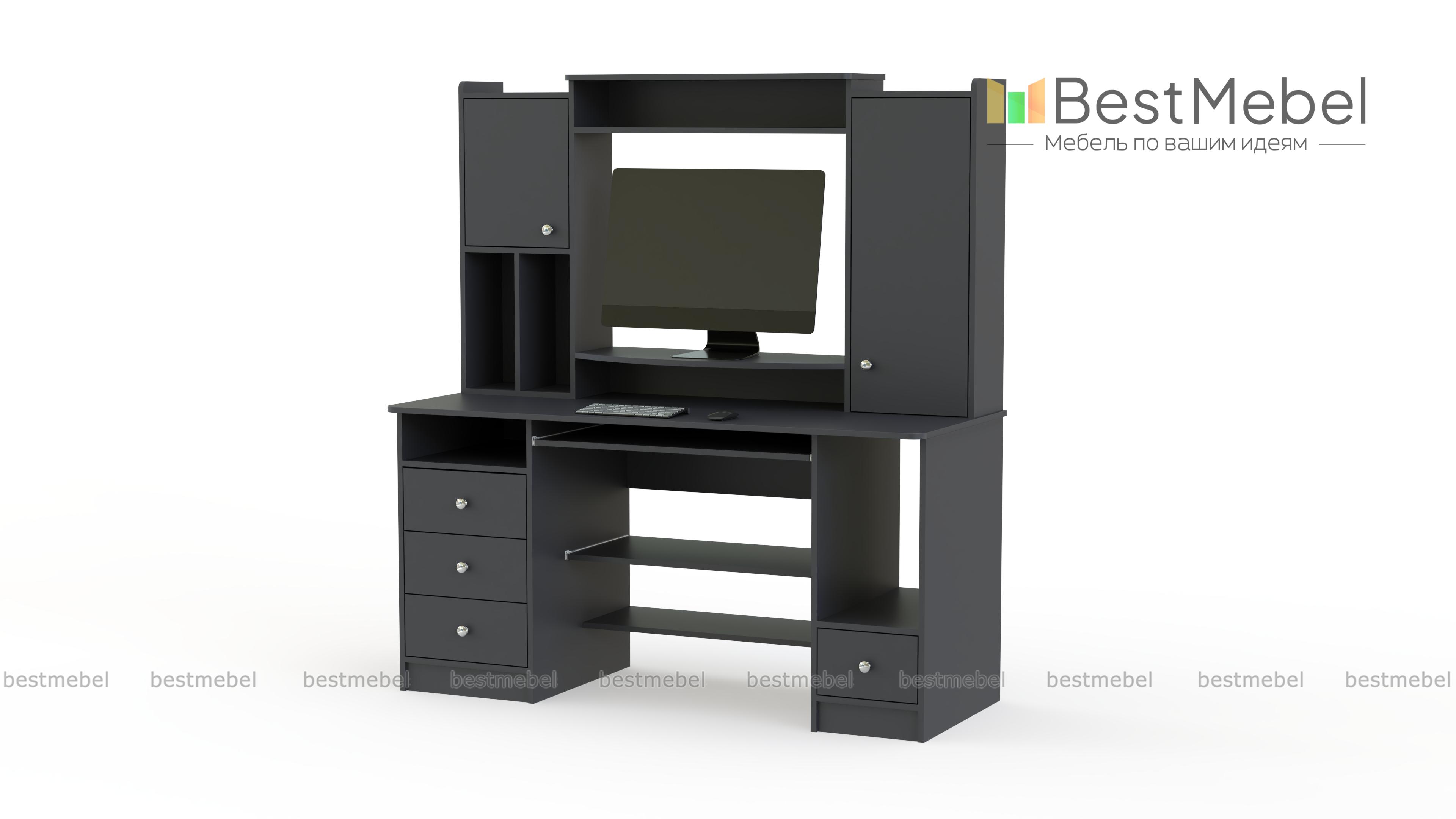 Стол компьютерный СК Планета 5 BMS поможет даже на небольшом пространстве обустроить комфортное рабочее место. Модель имеет надстройку с нишей под монитор, шкафчиками и полками для периферийных устройств, а под столешницей расположены выдвижные ящики, отделение для системного блока и полки. Скругленные углы столешницы и боковин делают пользование комфортным и безопасным. Купить стол компьютерный СК Планета 5 BMS приглашаем в наш интернет-магазин, подобрав фурнитуру и цвет по каталогу.