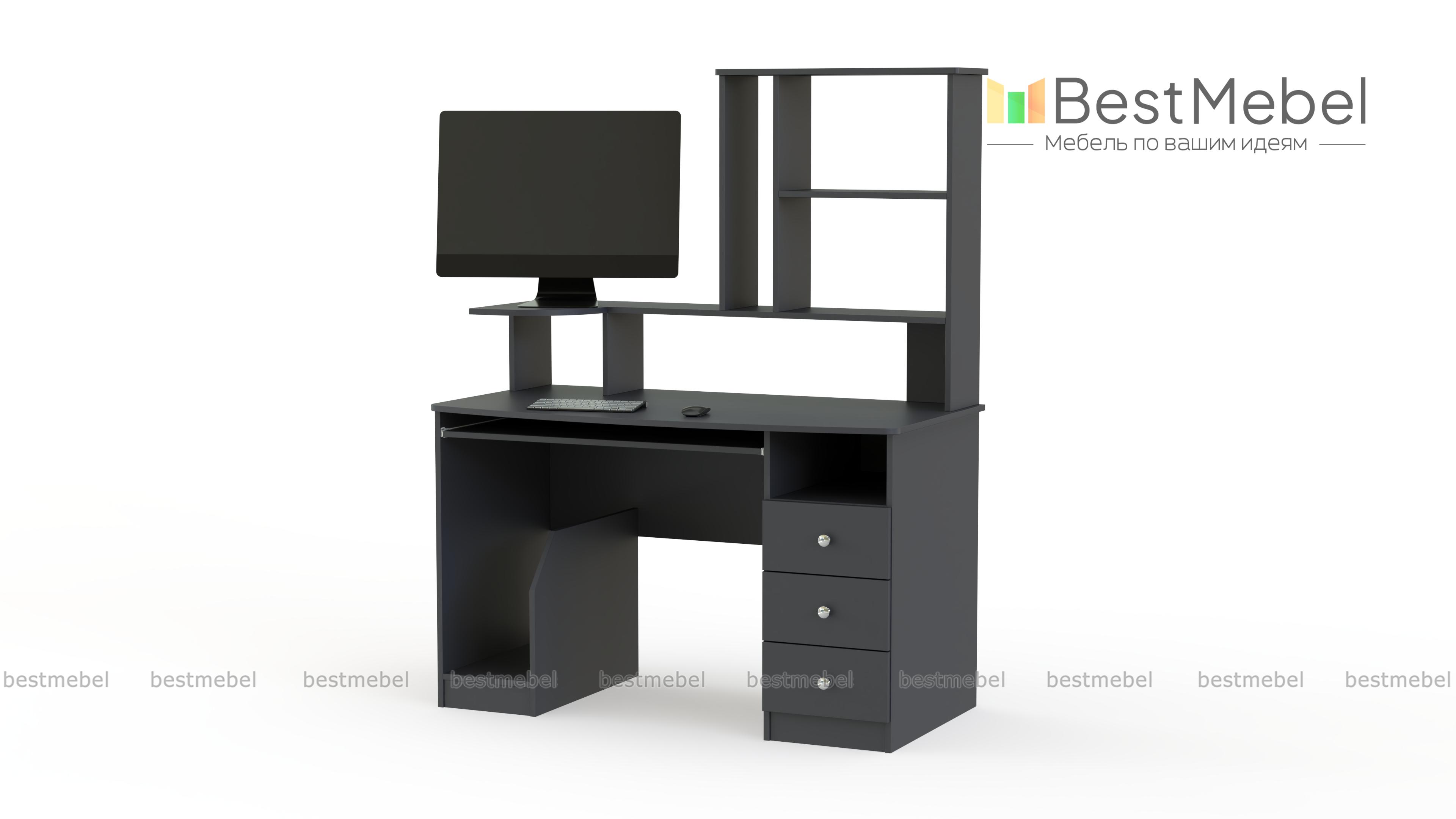 Стол компьютерный СК-002 BMS сочетает в себе простоту и эргономичность. Плавно вырезанная столешница дополнена выкатной полкой для клавиатуры и надстройкой с подставкой для монитора. Практичным решением для хранения канцелярских принадлежностей и бумаг станет тумба с нишей и тремя выдвижными ящиками, а для системного блока предназначена открытая секция сбоку. Купить стол компьютерный СК-002 BMS вы сможете в нашем интернет-магазине, подобрав гармонирующую с интерьером цветовую гамму.