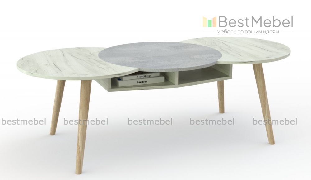 Журнальный стол Амиго 5 BMS с необычной формой столешницы будет играть в интерьере роль стильного акцента. Три круглых столешницы в трендовых природных оттенках эффектно разместят декор или чашки с кофе, а для хранения книг и бытовых мелочей предусмотрены две ниши. Высокие скошенные ножки обеспечат столу необходимую устойчивость и добавят пространству «воздуха». Купить журнальный стол Амиго 5 BMS вы сможете в нашем интернет-магазине с выбором цвета по каталогу.