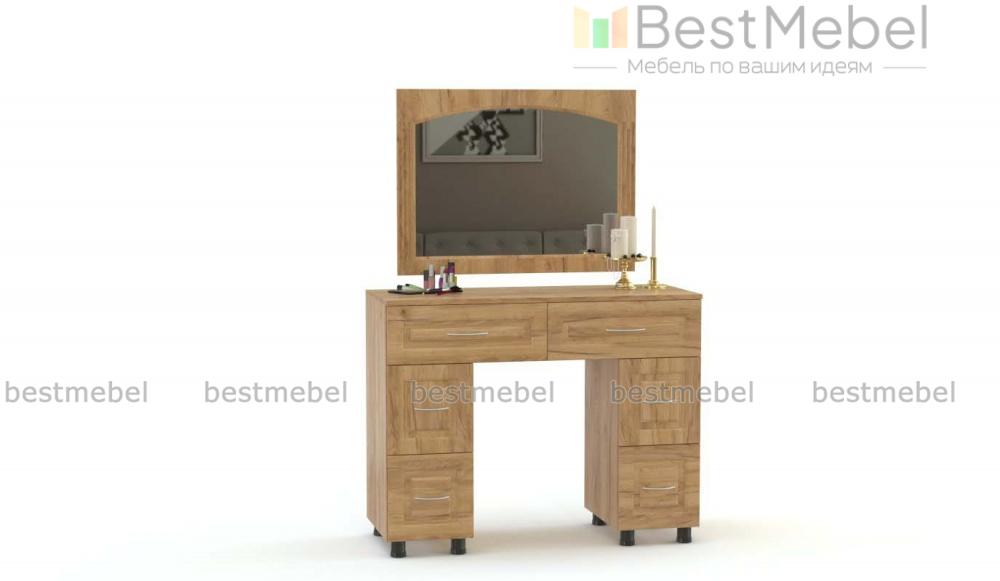 Туалетный стол Элизабет Композиция 2 BMS – это двухтумбовая модель с широкой столешницей, двумя большими и четырьмя малыми выдвижными ящиками. Дополненный навесным зеркалом в элегантной раме, столик сделает уход за собой комфортным и украсит спальный интерьер. Выполненная в универсальных светлых тонах, модель декорирована классической рамочной фрезеровкой и располагается на регулируемых пластиковых ножках. Купить туалетный стол Элизабет Композиция 2 BMS приглашаем в наш интернет-магазин.