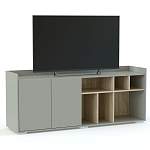 Тумба под ТВ Арктик 2 BMS с бортиками экономно использует пространство комнаты, обеспечивая хорошую вместительность. В закрытой левой части тумбы располагается распашное отделение, а справа - разделенные перегородками секции под книги, электронику и декор. Корпус нейтрального оттенка красиво сочетается с внутренней отделкой, имитирующей дерево. Купить тумбу под ТВ Арктик 2 BMS, изготовленную по индивидуальным размерам, вы сможете в нашем интернет-магазине.