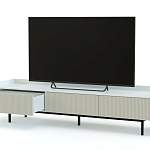 Тумба под ТВ Николь 13 BMS поможет эстетично оформить пространство под телевизионной панелью. Просторная столешница ограничена бортиками, чтобы защитить аппаратуру и декор от случайного падения, а для хранения ТВ-аксессуаров предусмотрены три выдвижных ящика. Визуально невесомую конструкцию создают светлые фасады с вертикальной фрезеровкой и основание из контрастного металла. Купить тумбу под ТВ Николь 13 BMS приглашаем в наш интернет-магазин с выбором размеров и цветовой гаммы.