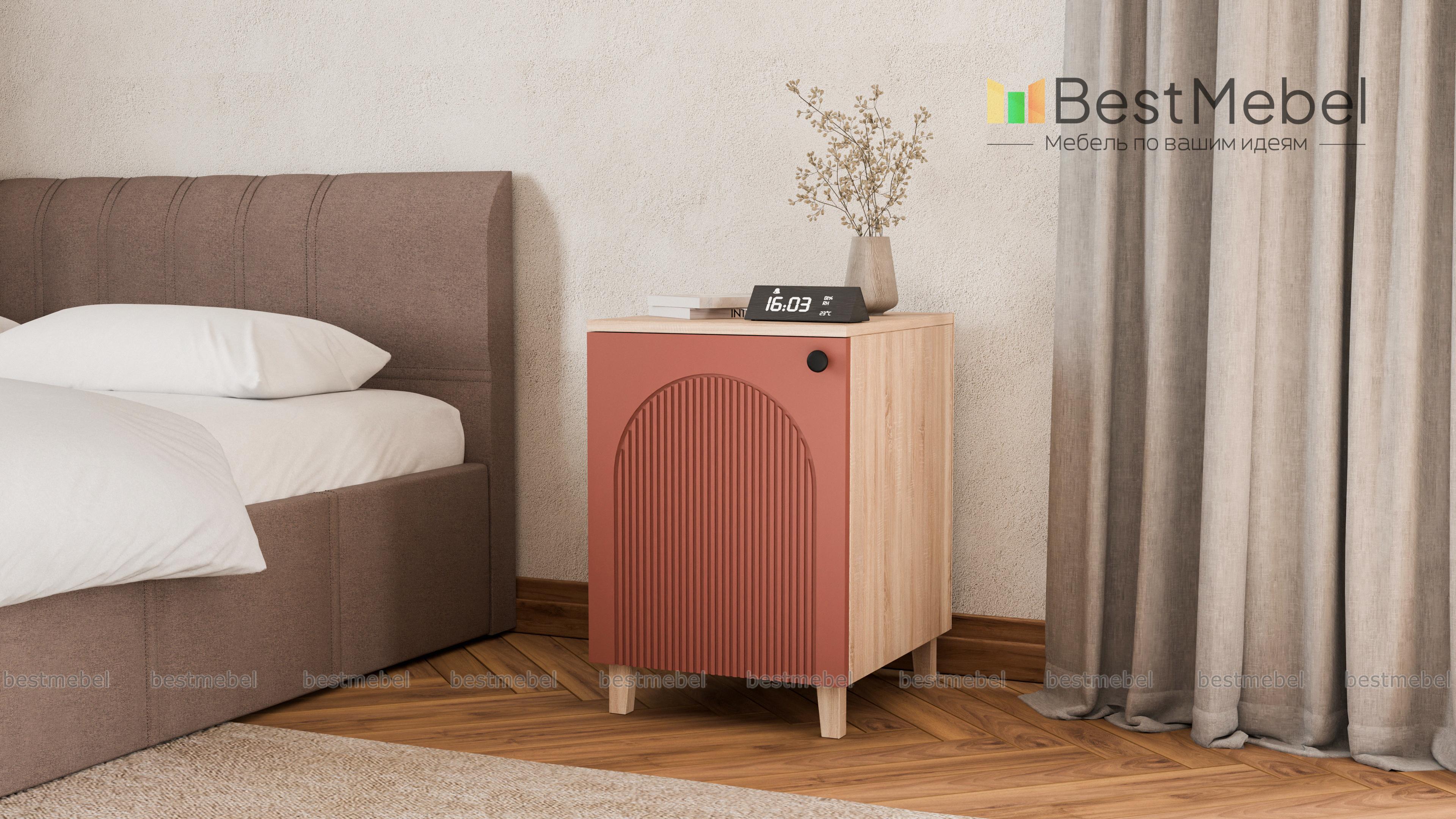 Тумба прикроватная Рене 1 BMS эстетично дополнит спальную композицию. Модель с одним распашным отделением разместит рядом с кроватью книги, средства ухода и прочие личные вещи, приятные мелочи и декор. Тумба с высокими ножками и оригинальным рельефом фасада прекрасно смотрится в комплекте с другими предметами коллекции и самостоятельно. Купить тумбу прикроватную Рене 1 BMS вы сможете на сайте нашего интернет-магазина, по желанию изменив цвет и размеры.