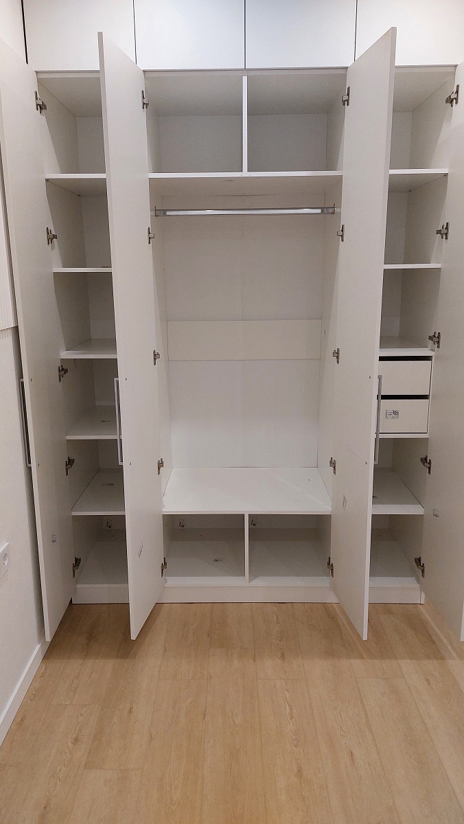 Заказывала шкаф в интернет магазине  производителя, понравилось, что здесь гораздо больше вариант улучшения шкафа под себя, чем в этом же магазине на озон. Заказала по индивидуальным размерам: шкаф стандартный, а антресль высотой 35 см. Фасады выбрала из мдф, выбрала нужные ручки, петли с доводчиками, два выдвижных ящика, для антресоли - систему открывания пуш ту опн, можно было даже толщину кромки добавить! Перезвонили быстро, уточнили все нюансы, о которых можно было забыть, а они важны. Приехал шкаф за 6 дней, упаковка почти вся была целая, мягкий гофркартон в некоторых местах бвл поврежден, но сам шкаф цел, углы деталей были защищены дополнительно пластиковыми насадками. Шкаф собрали быстро мои опытные сборщики, сказали что шкаф достойного качества, все места для креплений были сделаны, крепежей хватило. Из минусов на торцевой части с одной стороны ошибочно сделали дырки для крепежа, получается они были с двух сторон, как будто перепутали, это неприлично, закрыла заглушками, и на этой же стенке очень сильно видны следы клея вместе соединения с кромкой, клей отмывается, но первое впечатление было подпорчено. Вцелом покупкой довольна и могу рекомендовать данного производителя. Любуюсь своим шкафом!