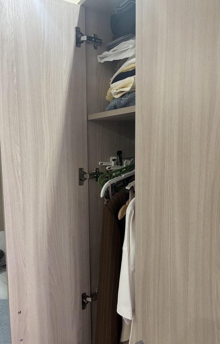Заказ 00000275042, шкаф распашной Остин Лайт 6 BMS (1700х2500х500). Это не первый мой шкаф с БестМебель. Классно, что можно придумать свое наполнение, очень удобно. В целом качество нормальное, кое-где есть микро сколы, но их видно только при ближайшем рассмотрении, но не при ежедневном использовании. Фурнитура приемлемая, только на верхних полках мы просили не устанавливать пуш-ту-опен механизм, иначе дверцы немного оттопыриваются. Но поскольку туда убраны редко используемые вещи, это не проблема. Так что могу рекомендовать, особенно если требуется какое-то нестандартное исполнение.