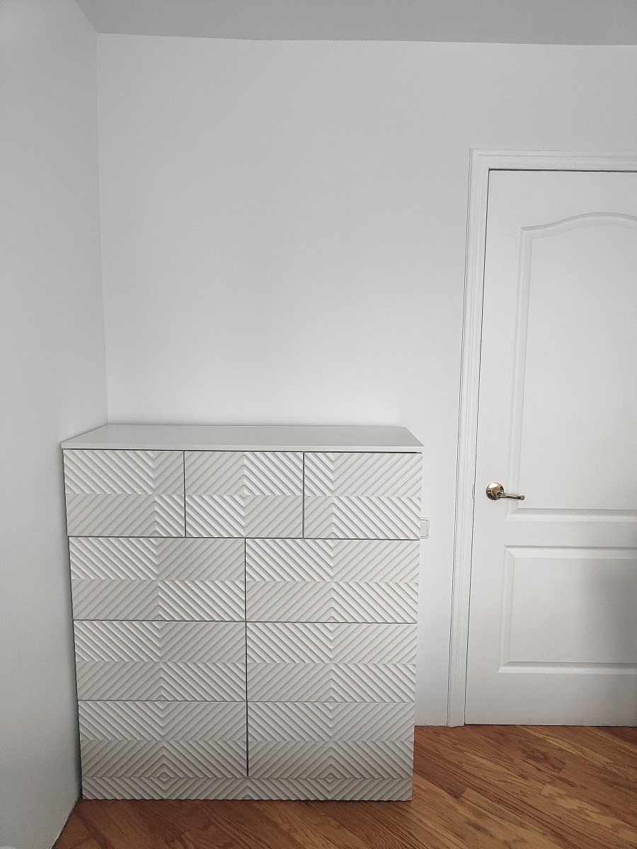 Собрали комод, который сами для себя придумали на основе имеющихся образцов с 9-ю выдвижными ящиками. Фасады с фрезеровкой выполнены и подогнаны очень хорошо. Рисунок был сложный, но все совпало и получилось очень красиво. Отдельное спасибо за нижнюю планку фасада на цоколь- получился единый рисунок и современный внешний вид. Есть замечания по глубине ящиков,  т.к. в собранном виде ящики не доходят до задней стенке на 6 см. Как-то этот момент не согласовали. Думаю, сто можно было на 5 см точно увеличить глубину ящиков, что было бы функциональнее, т.к. комод это не только фасад, но и шкаф для вещей, постельного белья и Эти 5см я учитывала  при  выборе размера комода.  Если проблема в фурнитуре, то можно было это обсудить. А так, нам теперь с этим жить. Ещё сборка тоже в некоторых местах не продумана ( центральные внутренние отверстия под симметричные направляющие почему-то одно сквозное. Получается, что направляющие  с одной стороны прикрутили, а потом с другой стороны центральной стойки в те же отверстия нужно прикручивать  с другой стороны направляющие. Шурупы ломаются друг о друга и конструкция кривая. Пришлось подгонять самим. Не хватило  2-х больших шурупов для сборки корпуса. Думаю, что лучше больше класть, чем меньше. Это уже 2-й наш большой заказ. В любом случае большое спасибо, что Вы воплощает наши мечты! Отдельное огромное спасибо инженеру-конструктору и мастеру по внешнему виду фрезеровки. Получилось ОГОНЬ!